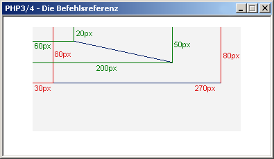 Mit imageline() zeichnet man auf einer Arbeitsfläche (im) eine Linie
